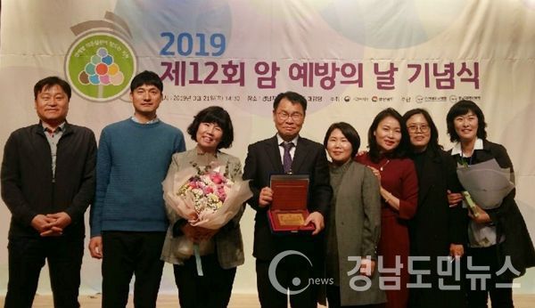 21일 함양군에 따르면 경상대학교병원 경남지역암센터에서 개최된 ‘2019년 제12회 암예방의 날 기념식’에서 강기순 보건소장이 경상남도지사 최우수기관상을 수상했다.