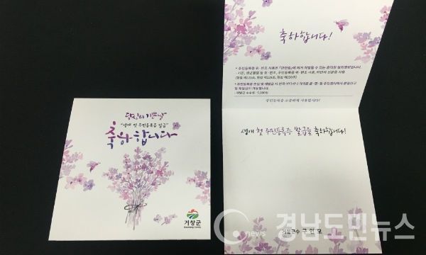 (경남도민뉴스) = 거창군은 오는 4월부터 생애 첫 주민등록증 발급을 받는 17세 이상 청소년에게 신규 주민등록증 배부 시 축하메시지가 담긴 축하카드를 함께 전달한다고 밝혔다.
