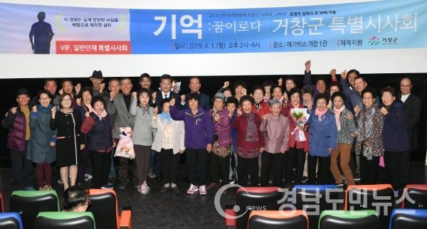 (경남도민뉴스) = 거창군은 1일 메가박스 거창점에서 영화에 출연한 신원면 수옥마을 주민들과 지역 주요단체 그리고 공무원 등 300명을 초청해 영화 ‘기억’ 특별시사회를 열었다.