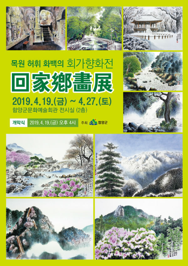 이번 전시전의 제목은 ‘회가향화전(回家鄕畵展)’으로 글자 뜻 그대로 고향으로 다시 돌아와 여는 작품전이라는 의미이다. 제목에 담긴 뜻과 같이 허휘 화백은 오랜 기간 천년의 숲 상림과 함양 8경을 화폭에 담아내는데 몰두하였다.
