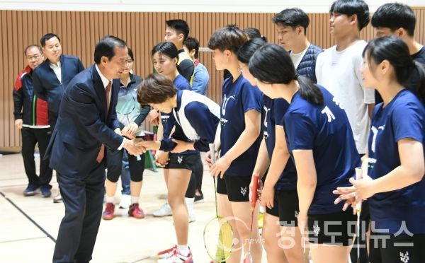 (경남도민뉴스) = 지난 9일 구인모 거창군수(거창군체육회장)는 오는 19일부터 22일까지 거제시 일원에서 개최되는 제58회 경상남도민체육대회에 거창군을 대표해 출전하는 종목별 선수단 훈련장을 격려 방문했다.