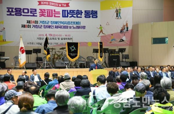 (경남도민뉴스) = 거창군은 19일 거창군 스포츠파크 실내체육관 및 주경기장에서 구인모 군수, 강석진 국회의원, 이홍희 의장을 비롯한 관내 기관단체장, 장애인 등 2,000여 명이 참석한 가운데 제39회 장애인의 날 기념행사를 성황리에 개최했다.