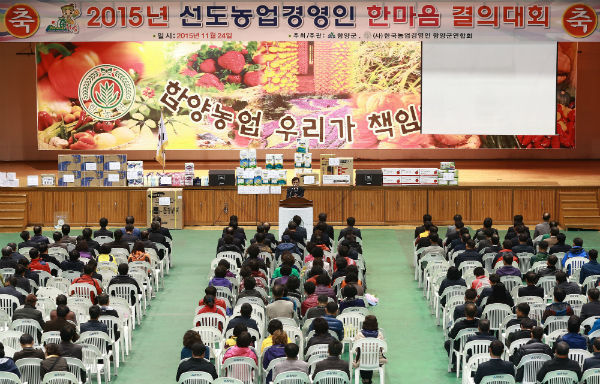 농업경영인함양군연합회(회장 김용원)는 24일 오전 고운체육관에서 회원 400여명이 참석한 가운데 ‘제25회 선도 농업경영인 한마음 결의대회’를 개최했다.