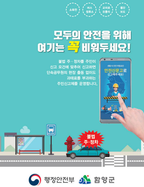 (경남도민뉴스) = 함양군은 불법 주정차 근절과 군민 안전의식 고취를 위해 다가오는 5월 6일부터 ‘4대 불법 주정차’행위에 대한 주민신고제를 본격 운영한다.