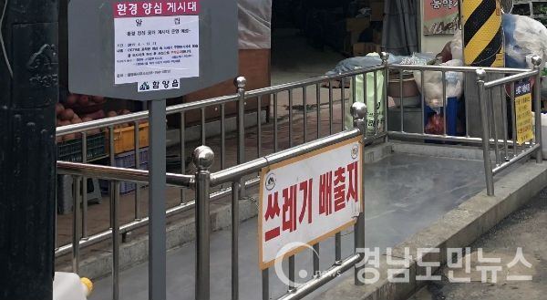 함양읍행정복지센터는 최근 종량제 규격봉투 미사용, 생활쓰레기 무단투기, 대형페기물 처리 스티커 미부착 무단배출 등 쓰레기 불법 투기자가 증가함에 따라 쓰레기무단투기 근절을 위해서 환경 양심 공개 게시대를 오는 12월까지 설치·운영한다.