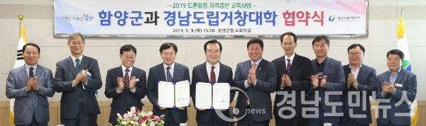 (경남도민뉴스) = 함양군(군수 서춘수)과 경남도립거창대학(총장 박유동)은 9일 함양군청 소회의실에서 일자리창출 특수시책사업의 일환인 ‘2019년 드론활용 자격증반 위탁교육사업’ 추진을 위한 업무협약을 체결했다.