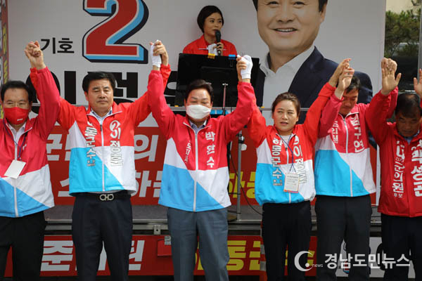 박 후보는 또 이정훈 하동군수 후보와 박영일 남해군수 후보의 지지유세에도 나섰다.