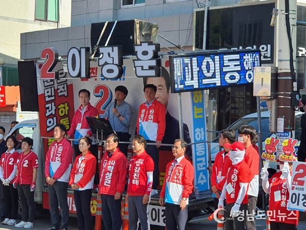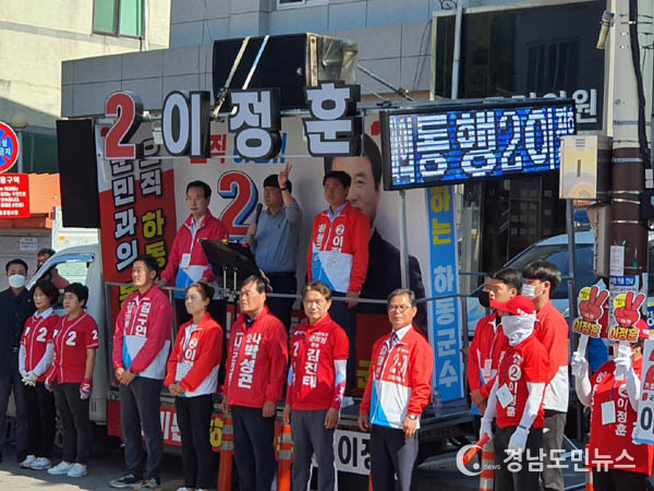 하영제국회의원은 “이정훈후보가 군수가 되어야 국비와 도비를 편하게 만들 수 있다”며 이정훈후보의 지지를 호소했고 박완수 경남도지사후보도 “여당 도지사와 함께 손잡고 일할 수 있는 이정훈후보를 뽑아달라”고 강조했다.