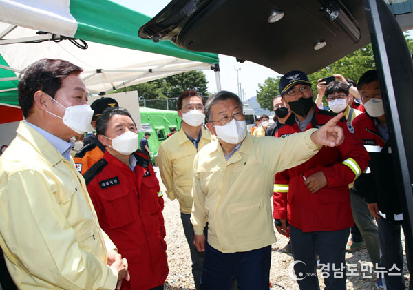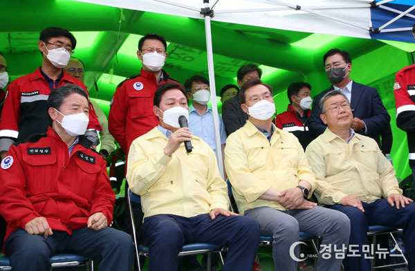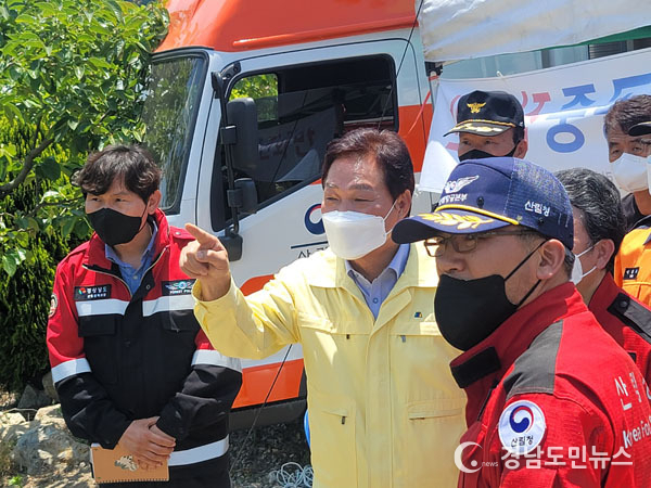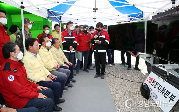 [경남도민뉴스] 박완수 도지사 당선인이 2일 사실상 첫 행보로 밀양 산불 현장을 방문해 진화 상황을 점검하고, 소방 관계자와 자원봉사자들을 격려했다.