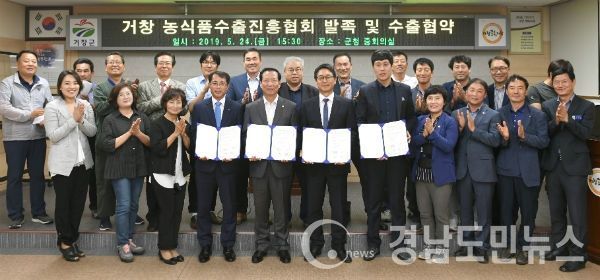 이날 창립식에 맞춰 진행한 거창농산물 미국수출 협약식에는 구인모 거창군수, 김향란 군의회부의장, 군의회 이재운, 박수자 의원, 농협중앙회 최병철 지부장, 경남은행 임만길 지점장 등 많은 내빈이 참석해 축하와 농식품 수출확대에 뜻을 모았다.