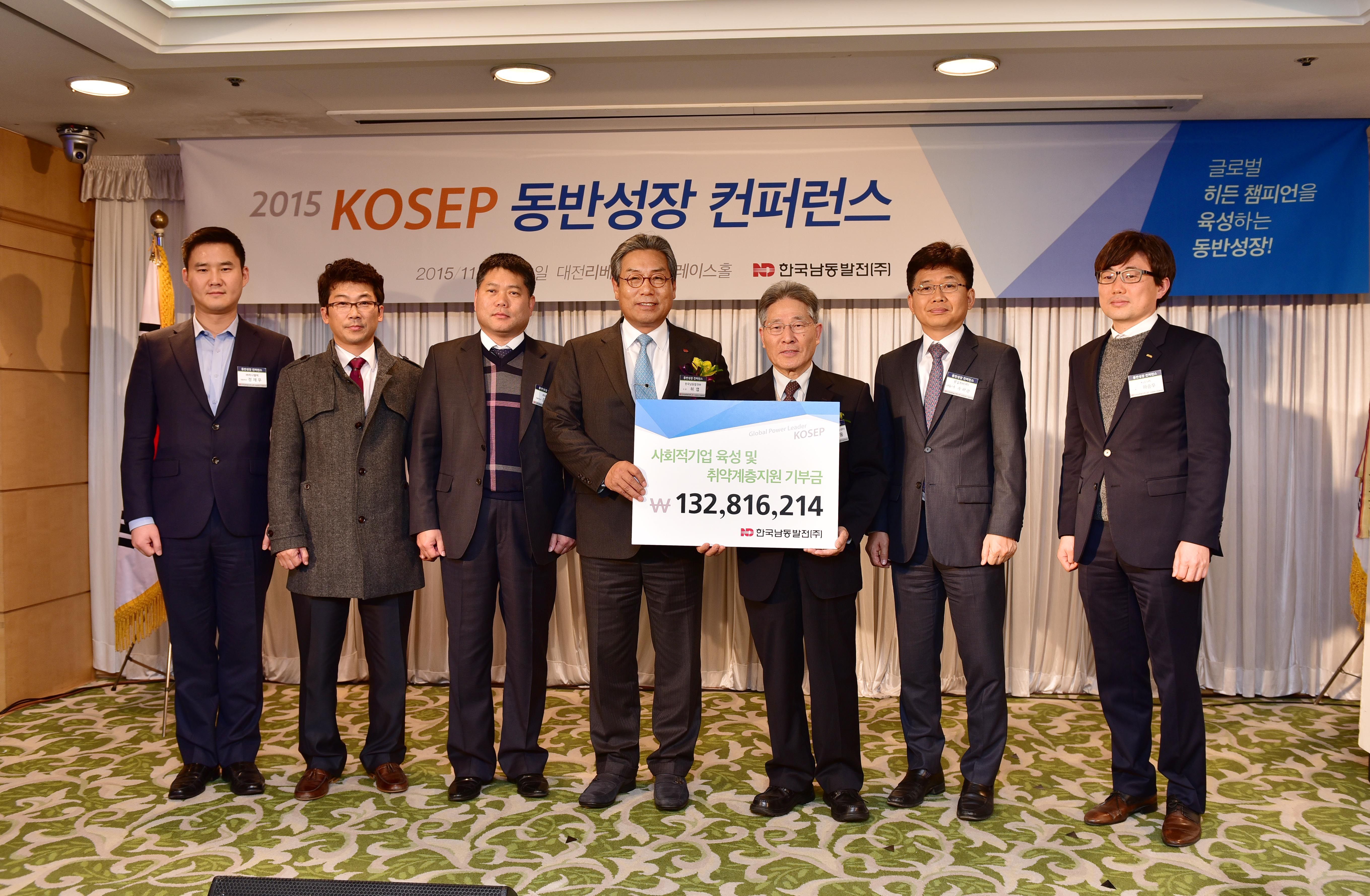 이번 행사에 앞서 남동발전 허엽 사장은 협력중소기업과 성과공유를 통해 얻은 수익금 전액 1억3천2백만원을 사회적기업활성화지원센터 안재웅 이사장에게 전달했다. 이날 전달한 성과공유 수익금은 남동발전과 성과공유협약을 맺은 성일터빈 등 11개사로부터 받은 수익금이다. 남동발전은 이를 사회적기업 발굴 및 육성에 활용해 오고 있다.