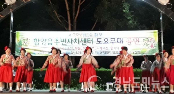 함양읍에 따르면 지난 2012년부터 매년 상림토요무대에 참가하고 있는 함양읍주민자치위원회(위원장 한경택 등)는 올해도 주민들의 여가선용 및 복리증진을 위해 운영 중인 주민자치센터 프로그램의 상반기 성과와 수강생들의 실력을 발표하고 상림을 찾는 내방객들과 지역문화 향유 기회를 나누는 자리를 마련했다.