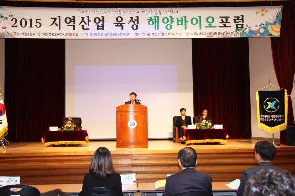 국립 경상대학교(GNUㆍ총장 권순기) 해양과학대학(학장 정한식)은 지난 26일 통영캠퍼스 해양생물교육연구센터 1917홀에서 ‘2015 지역산업 육성 해양바이오포럼’을 해양수산부와 전국해양생물교육연구센터협의회가 주최하고 경상대 해양생물교육센터(센터장 김남길 해양식품생명의학과 교수) 주관하에 개최했다.