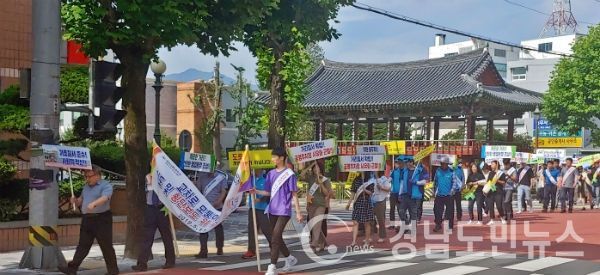 (경남도민뉴스) = 함양군이 공영주차장 유료화 시범운영과 맞물려 인도 위 물품적치 및 영업행위 등을 방지하기 위해 대대적인 기초질서 지키기 캠페인을 펼쳤다.
