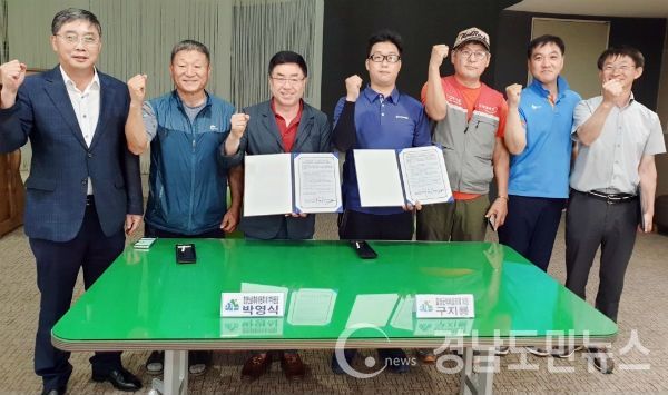 함양산삼축제위원회(위원장 김성기)는 15일 오전 10시 축제위원회 사무실에서 관내 택배연합회(회장 구지룡)와 2019함양산삼축제 성공개최를 위한 업무협약을 체결했다.