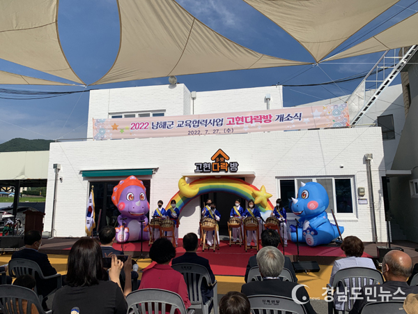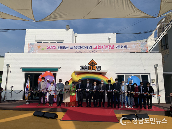 [경남도민뉴스] 경상남도는 27일 도, 도교육청, 시군이 함께 추진하는 ‘2022년 시‧군 교육협력사업’의 선정지인 남해군에서 고현 다락방 개소식을 가졌다.