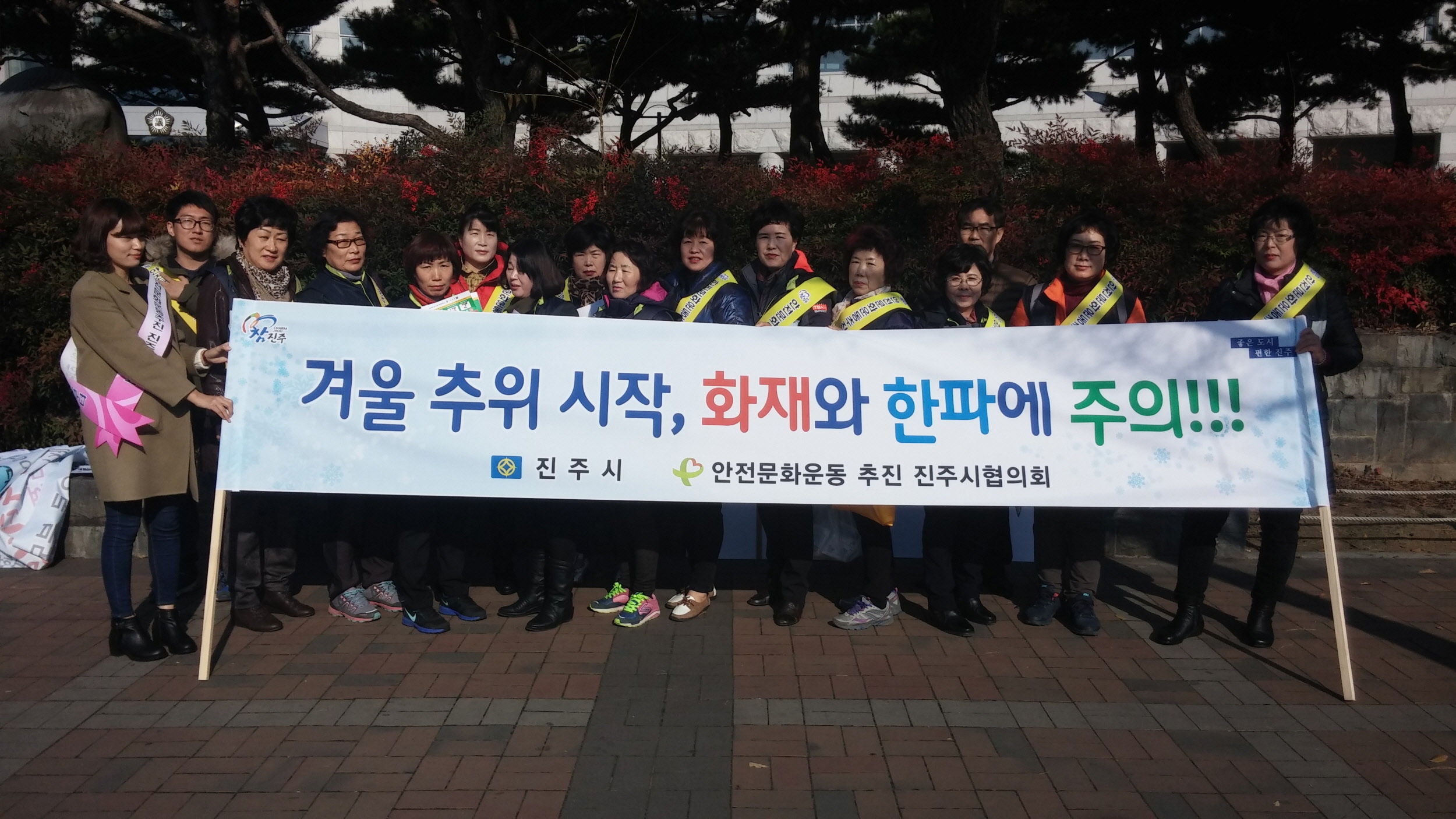 이날 캠페인은 진주소방서, 여성의용소방대 등 40여명이 참여한 가운데 겨울철 화재와 한파, 대설대비 국민행동요령, 소소심(소화기,소화전,심폐소생술 익히기) 캠페인과 더불어 풍수해 보험 홍보에 관한 내용으로 행사가 진행됐다.