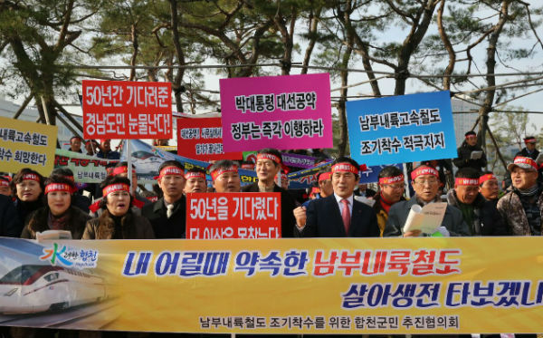 하지만 정부는 남부내륙철도의 비용편익분석에서 경제성이 떨어진다는 결과가 나오자 착공을 미루고 있다.