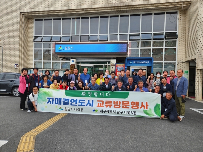 [경남도민뉴스] 밀양시 내이동 행정복지센터(내이동장 김헌철)는 지난 23일 밀양아리랑대축제를 맞이해 자매결연도시인 대구광역시 남구 대명3동 행정복지센터(대명3동장 이종태)와 자매결연교류 행사를 개최했다.
