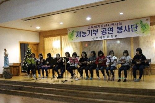 진주삼현여자중학교(교장 김영권)는 지난 19일 교육복지 토요아카데미 동아리와 자유학기제 동아리 회원 50여명이 진주복지원을 찾아가 “재능기부 공연 봉사” 활동으로 이웃사랑을 실천했다.