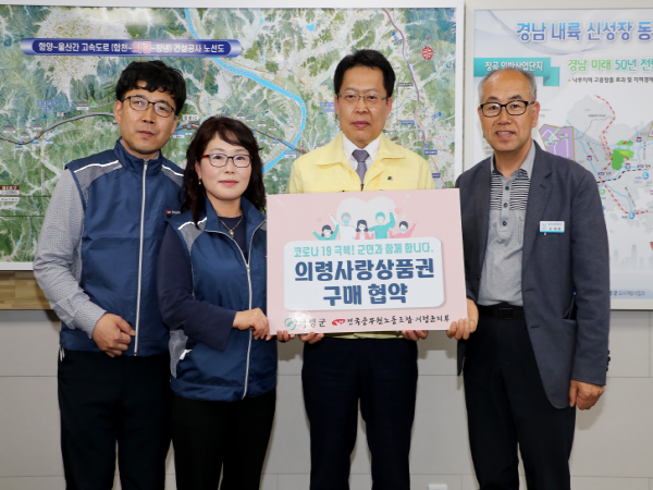 남수분지부장은 “코로나19 극복을 위해 비상근무 등 본연의 업무에 최선의 노력을 다하고 있음은 물론, 이처럼 어려운 상황에 지역경제를 다함께 극복하기 위하여 적극적으로 동참해 주신 조합원들에게 감사드린다.” 며 “이번 의령사랑상품권 추가 구매와 구내식당 확대 휴무가 의령군 지역경제에 활력을 불어 넣고 군민과 함께하는 공직자로 거듭나길 바란다.”고 말했다.