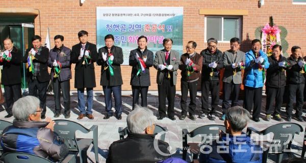 한국농어촌공사 거창·함양지사가 주최하고 청햇골 추진위원회가 주관한 이날 준공식에는 임창호 군수, 황태진 군의회 의장, 진병영 도의원, 군의원, 한국농어촌공사 거창·함양지사장, 기관단체장, 지역향우회 및 주민 등 200여명이 참석해 준공을 축하했다.