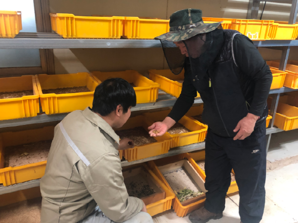 군은 지난 3월에 식용곤충, 단감, 양봉의 3개 작목 선도농가와 귀농연수생을 선발하여 4월부터 현장실습교육을 실시하고 있다.