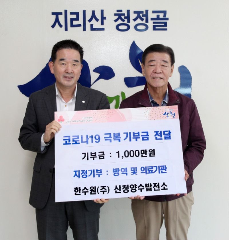 군 관계자는 “지난 3월에도 지역주민들에게 KF94마스크 1000개를 지원한데 이어 또 한번 나눔정신을 발휘해주신 산청양수발전소에게 감사하다”며 “전달받은 성금은 코로나19 극복에 쓰일 수 있도록 하겠다”고 말했다.