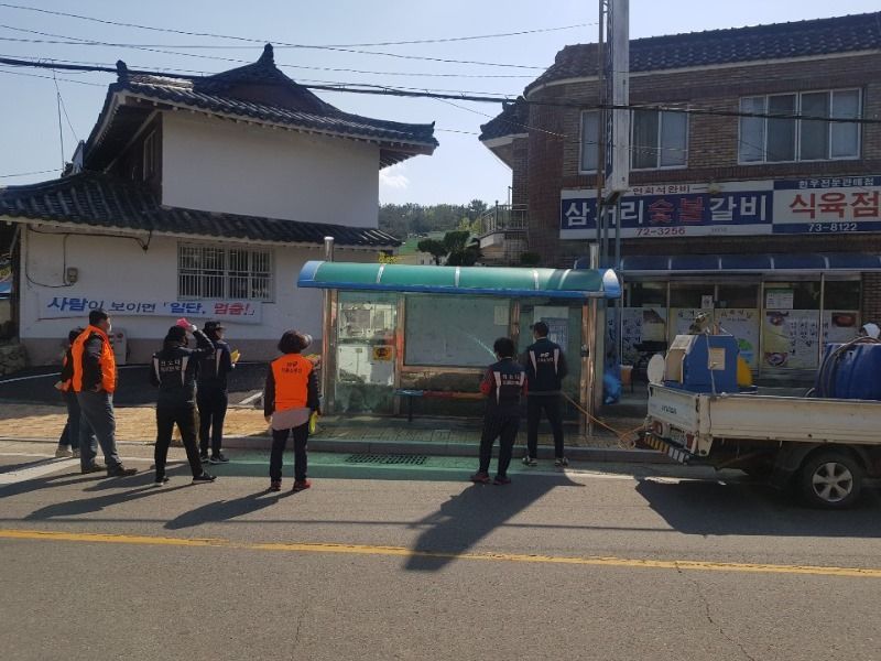 신등면 남녀의용소방대 대원 40여명은 지역 내 모든 버스승강장 20곳을 중심으로 방역소독을 실시했다.