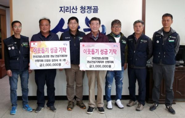 전국건설노동조합 경남건설기계지부 산청지회(지회장 박재식)가 29일 산청군을 찾아 이웃돕기 성금 300만원을 전달했다.