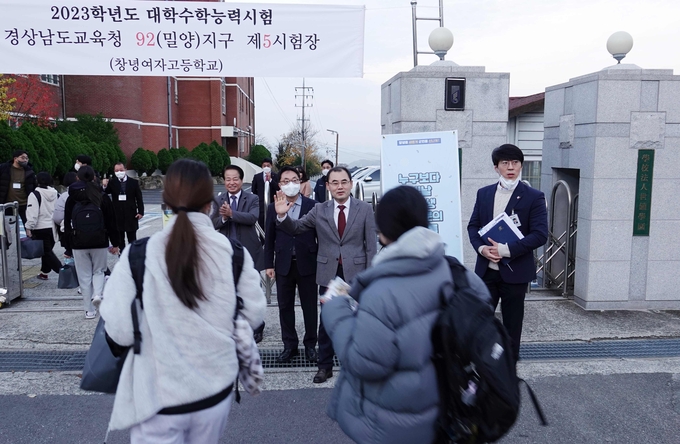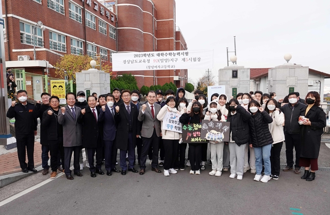 창녕여자고등학교에서  2023학년도 대학수학능력시험 격려 기념촬영