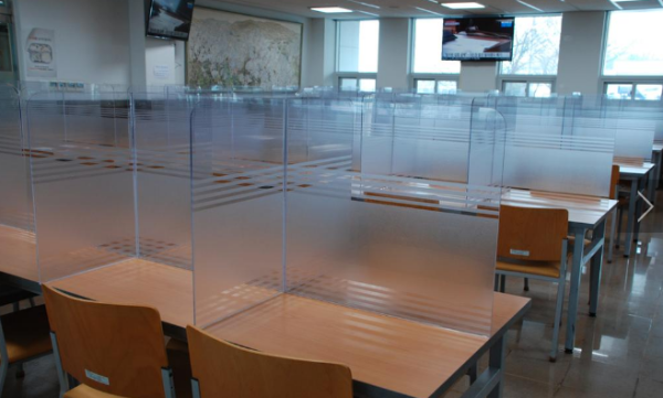 구내식당 투명 칸막이 설치는 많은 인원이 몰리는 점심시간에 직원들 간 접촉을 피하고 감염요인을 사전에 차단하기 위한 조치이다.