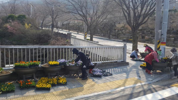 봄을 맞이하여 창녕읍 여성단체 회원 등 20여명이 참여해 오리정 사거리 등 창녕읍 시가지내 도로변에 있는 꽃 화분과 화단에 금잔화, 팬지, 비올라 등 봄꽃 13,500여본을 심었다.