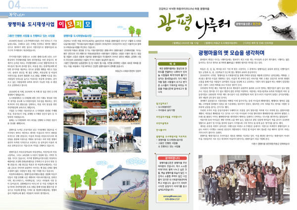 A3 크기의 4면으로 제작된 이번 창간호에는 ‘건강하고 넉넉한 하동라이프’를 모토로 한 광평마을 도시재생 뉴딜사업 추진상황, 주민 및 마을공동체 활동 등의 정보와 더불어 마을의 소소한 이야기를 소개했다.