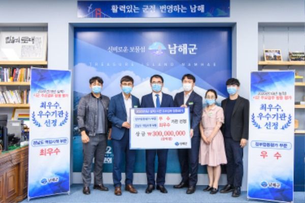 남해군은 도내 18개 시․군을 대상으로 실시한 경남도 2020년(2019년 실적) 주요업무 합동평가에서 경남도 역점시책 부문 최우수, 정부합동평가 부문 우수기관으로 선정돼 3억원의 인센티브를 받게 됐다고 2일 밝혔다.