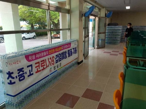 창녕군은 3일부터 코로나19 집단감염 예방을 위해 초·중·고 36개교 전 학생 5,116명에게 1인당 30병(500㎖)의 개인 생수를 배부한다.