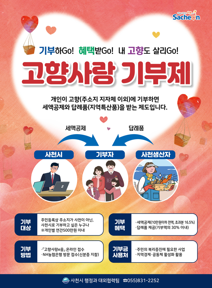 [경남도민뉴스] 사천시(시장 박동식)는 고향사랑기부제의 성공적인 정착과 활성화를 위해 적극적으로 홍보에 나선다고 17일 밝혔다.