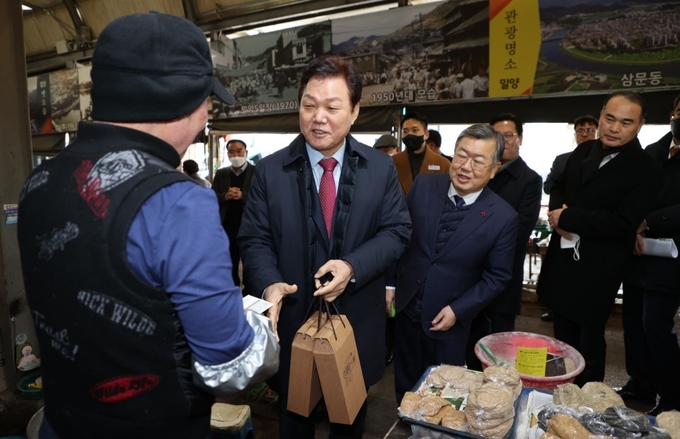 [경남도민뉴스] 박완수 경상남도지사는 설 명절을 맞아 17일 밀양아리랑시장을 방문해 상인관계자를 격려하고 현장의 목소리를 청취하는 등 민생 챙기기 행보에 나섰다.
