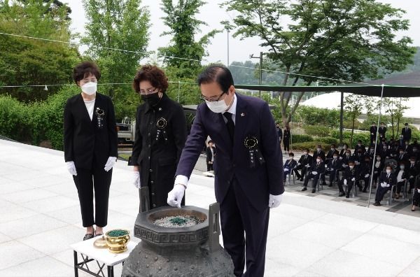 창녕군(군수 한정우)은 6일 오전 창녕읍 퇴천리 충혼탑에서 나라를 위해 목숨을 바친 순국선열과 호국영령들의 숭고한 희생정신을 기리는 제65회 현충일 추념식을 개최했다.