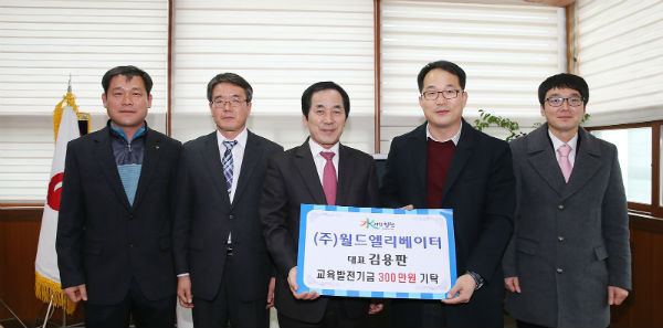 ㈜월드엘리베이터 김용판 대표는 지난 20일 (사)합천군교육발전위원회(이사장 하창환)를 방문하여 교육발전기금 3백만원을 기탁했다.