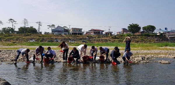 군은 지난 9일 오후 경호강 일원에 뱀장어 치어 4000여마리를 방류했다고 10일 밝혔다.