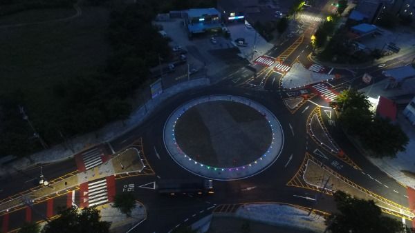 특히 회전교차로 내 교통섬에는 야간에도 안전하게 운전할 수 있도록 발광형표지판 및 LED시선유도 조명시설을 설치해 야간 교통사고 예방효과 및 도시미관을 최대한 살렸다.