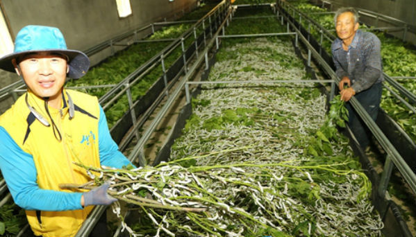 경남 산청군 금서면 쌍효마을 윤종섭씨(44) 잠실에서 지리산 산청 뽕잎을 먹인 누에 사육 작업이 한창이다.