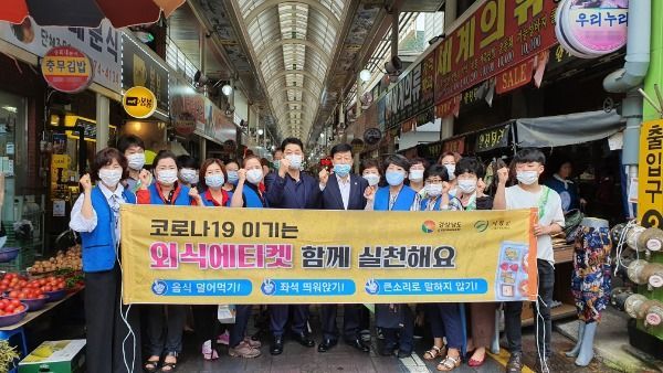 이날 캠페인은 ▷위생관리 ▷거리두기 ▷식사문화 3가지 주제로 음식점 이용객은 개인접시사용, 다른 사람들과 거리 띄우기, 음식 덜어먹기 등을, 영업주는 종사자 마스크 착용, 매일 1회 이상 소독 실시, 탁자 간격 1m이상 조정, 집게·국자·개인접시 제공 등의 실천사항을 홍보하고 참여를 유도했다.