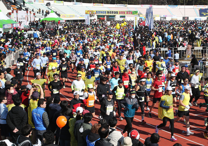 [경남도민뉴스] 제19회 밀양아리랑마라톤대회가 26일 밀양종합운동장에서 성황리에 개최됐다.