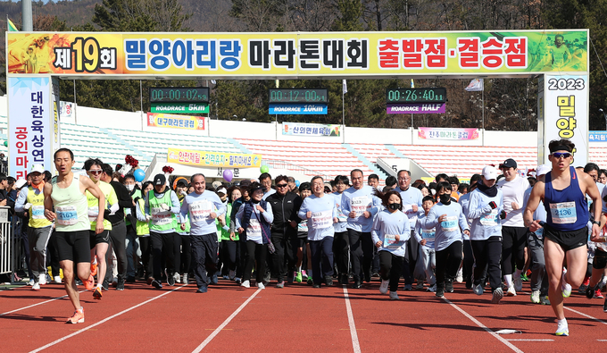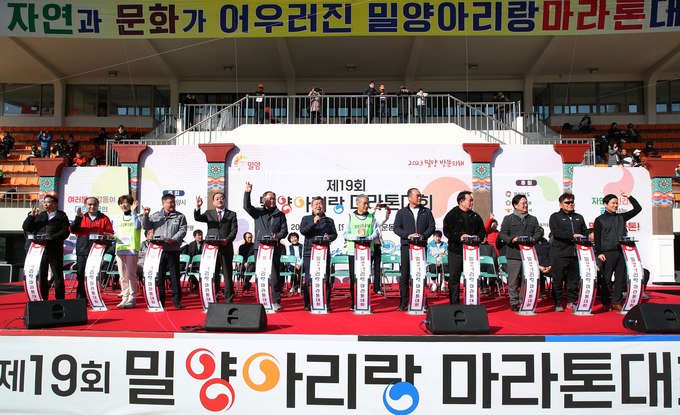 박일호 밀양시장은 “4년 만에 개최하는 제19회 밀양아리랑마라톤대회가 성공적으로 마치게 되어 기쁘다”라고 전하며,“밀양 방문의 해를 여는 첫 대회로 전국의 마라토너들뿐만 아니라 밀양을 방문해 주신 모든 분들을 환영한다. 끝까지 최선을 다해 뛰어주신 모든 참가자분들이 다 함께 즐기고 다 함께 건강해지는 계기가 됐기를 바란다”라고 말했다.