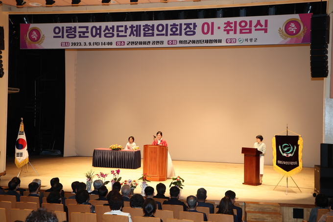 [경남도민뉴스] 의령군 여성단체협의회는 9일 의령군민회관 공연장에서 제15대 허둘이 회장과 제16대 김순자회장의 이취임식을 개최하였다.
