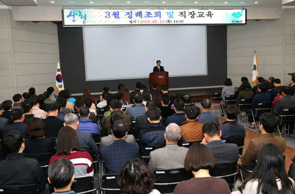 산청군은 10일 군청 대회의실에서 3월 정례조회 후 전 공무원을 대상으로 희망교육개발원 김경희 원장을 초청하여 “멋진 친절이 행복한 산청군을 만듭니다”라는 주제로 공무원 친절 교육을 가졌다.