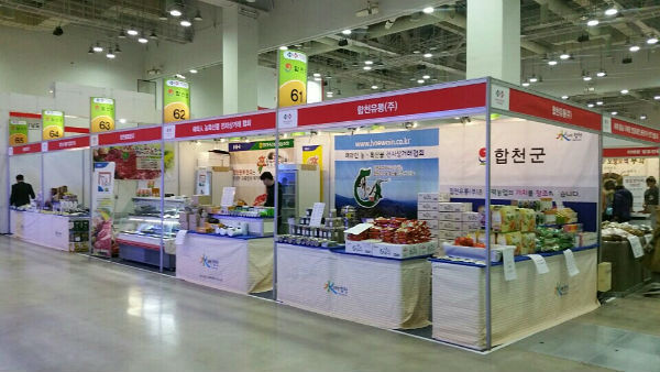 합천군에서는 합천유통(주), 해와人 농특산물전자상거래협회, 합천로컬푸드영농조합법인, 합천축협 및 마을기업협의회 등 5개 업체가 참가를 하여 딸기, 표고버섯, 파프리카등의 신선 농산물과 황토한우, 토종돼지, 산채류, 잡곡류등의 합천의 대표 농특산물이 총 출동하여 이번 박람회에 선보여 소비자들의 마음을 사로잡았다.
