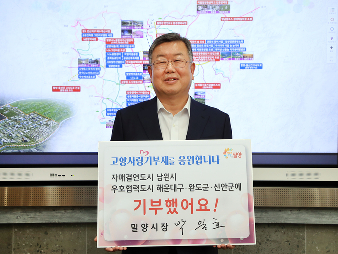 박 시장은 “고향사랑기부제의 활성화를 위해 인증 챌린지가 활발히 이어지기를 바라는 마음이다”며 “앞으로도 자매결연·우호협력도시와 교류를 활발하게 추진해 밀양시의 고향사랑기부제 활성화에 기여하겠다”고 말했다.